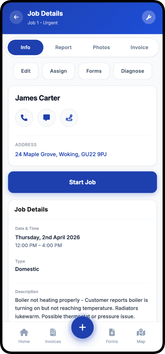 Give the job to the right engineer or subcontractor from your phone. They get exactly what they need to start.